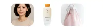 이어서 저는 제미나이에게 세 가지 필수 요소를 제공했습니다. 바로 인물, 한복, 그리고 화장품 이미지입니다.