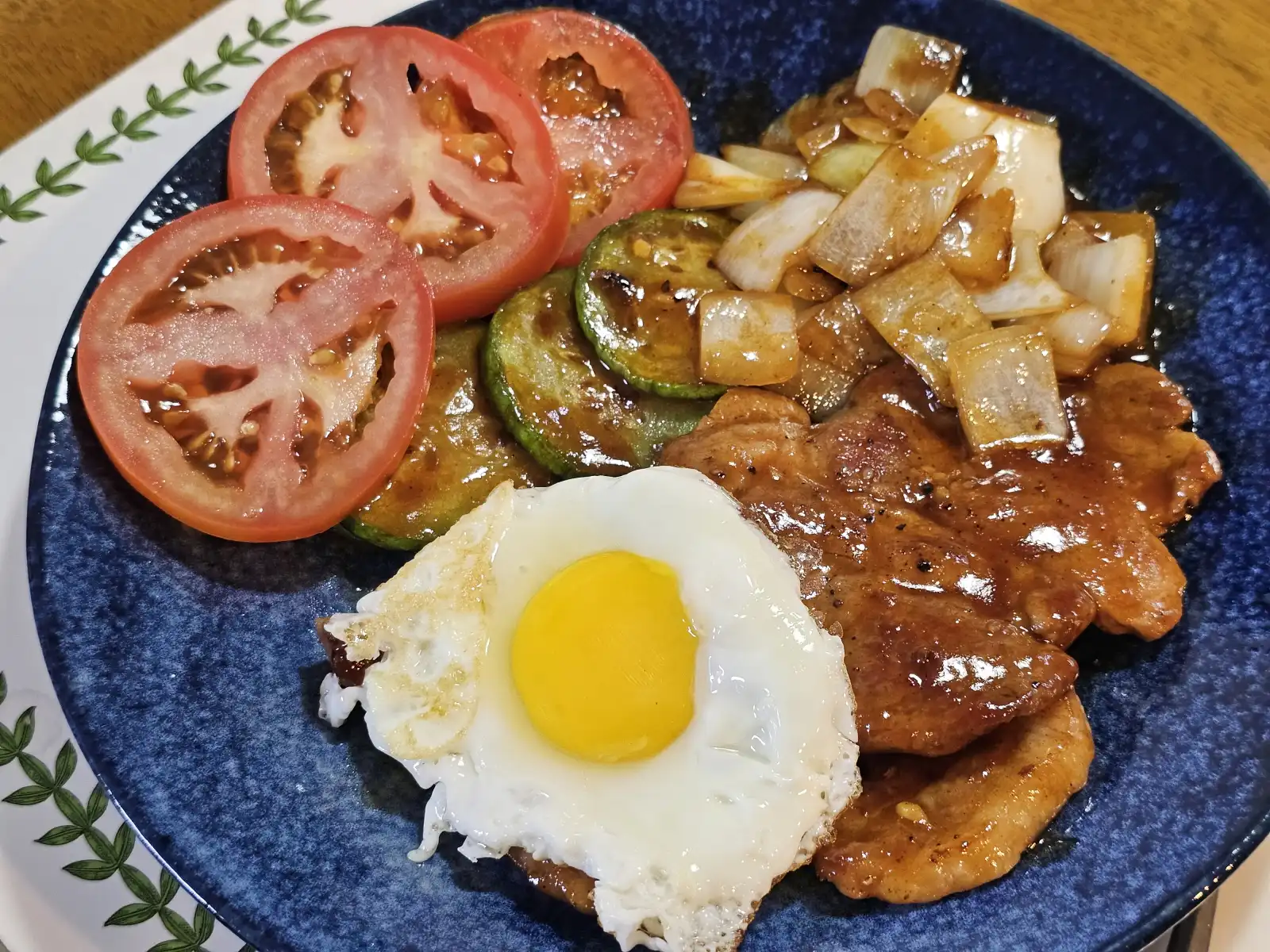 넓은 접시에 고기와 채소를 담고, 서가앤쿡의 상징인 '반숙 계란 프라이'를 살포시 올려주면 완성! 노른자를 톡 터뜨려 고기를 찍어 먹으면 고소함이 배가 된답니다.