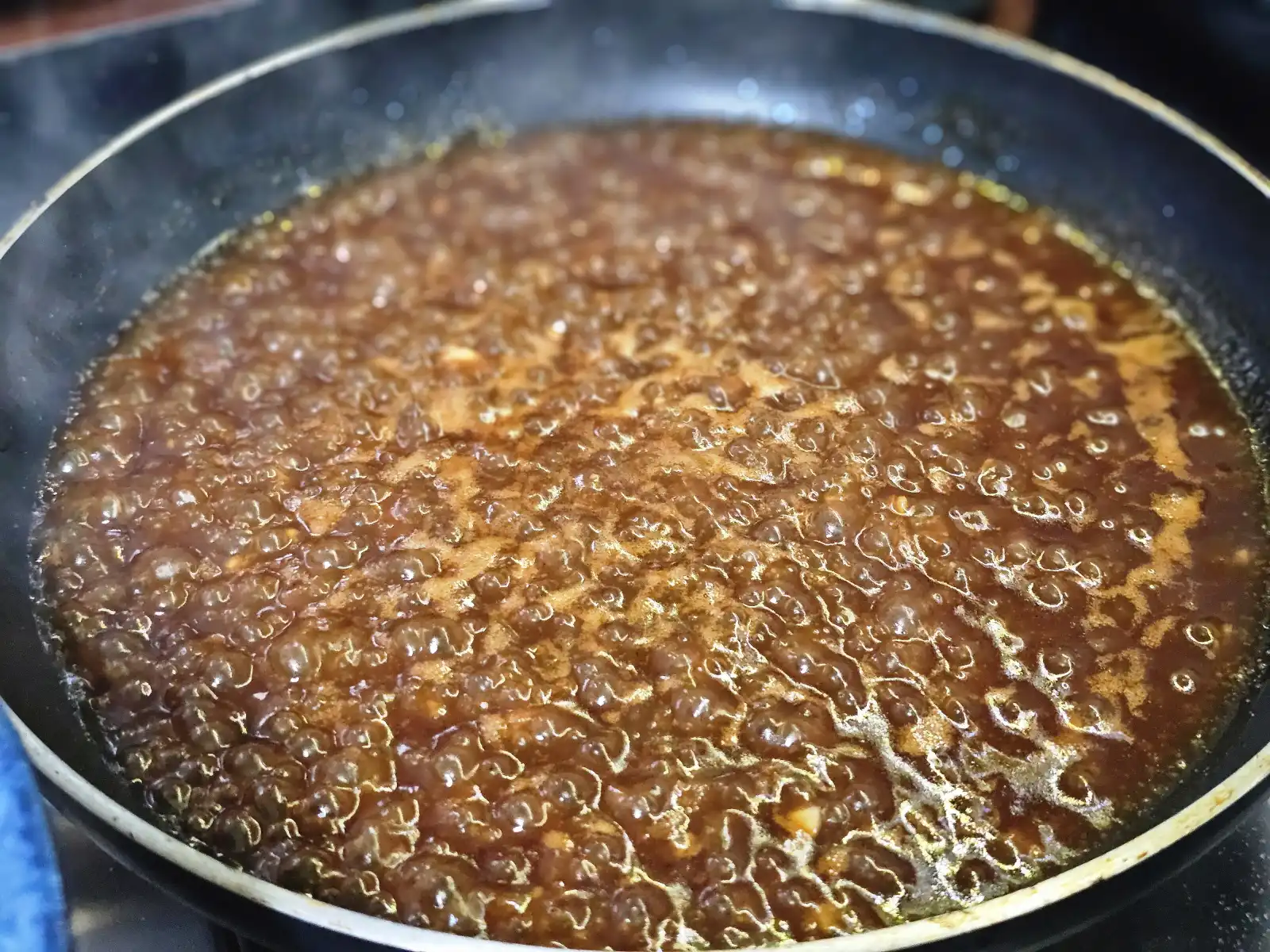 3. 농도 조절: 소스가 끈적해질 때까지 졸여야 윤기가 좔좔 흐름.