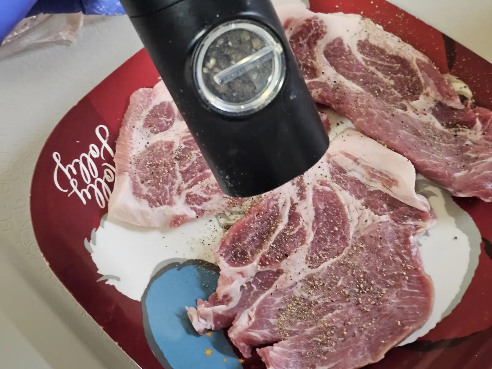 "엄마가 우리 딸 좋아하는 거 다 해줄게!" 큰소리치고 바로 냉장고를 열었습니다. 마침 남편이랑 코스트코 갔을 때 사 둔 두툼한 목살과 소스가 눈에 딱 들어오더라고요.