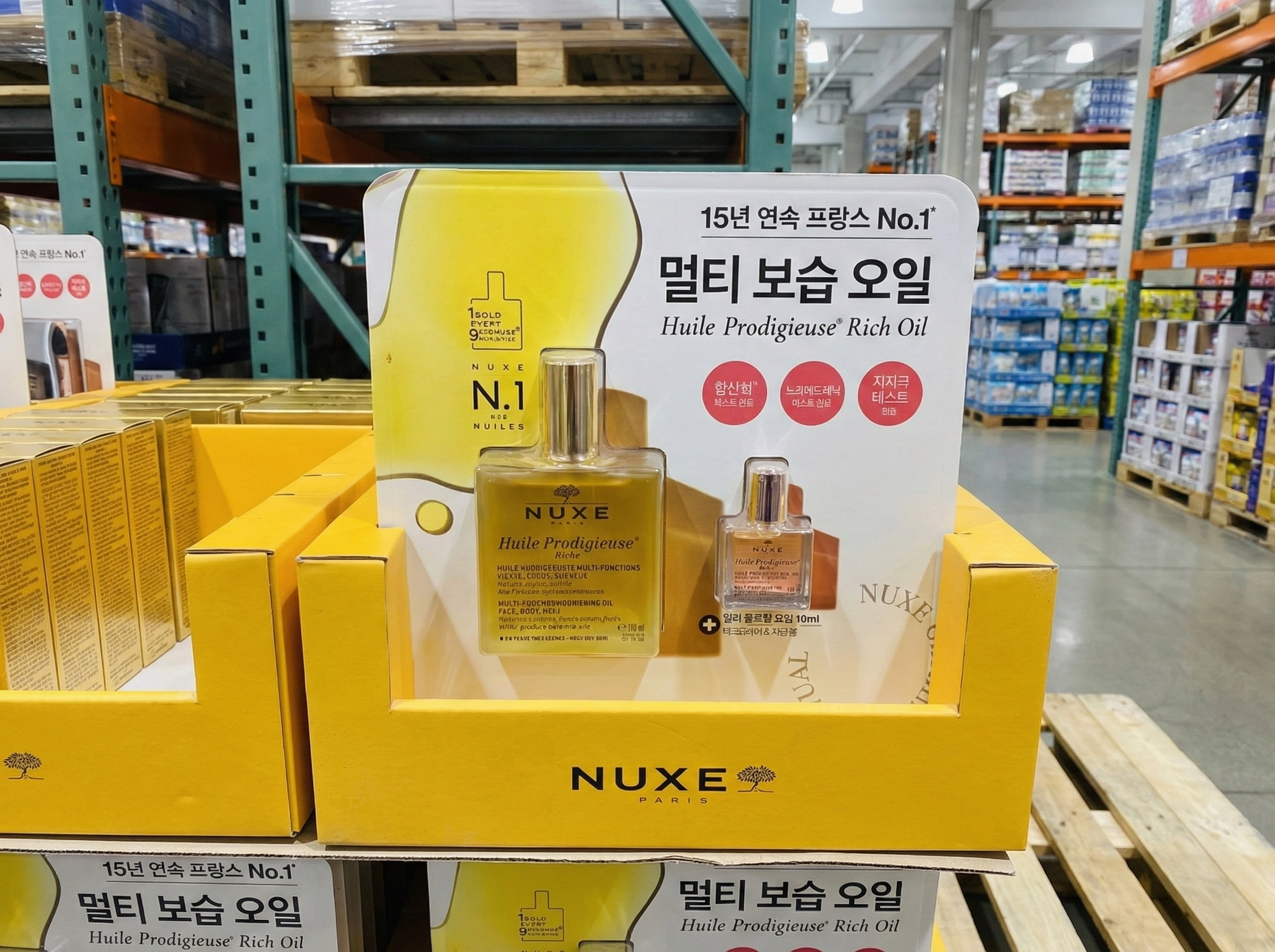 주말에 남편이랑 코스트코(Costco) 장을 보러 갔다가, 제가 겨울마다 화장대 필수템으로 쟁여두는 '눅스(NUXE) 윌 프로디쥬스 멀티 리치 오일'이 할인 중이길래 냉큼 카트에 담아왔습니다.