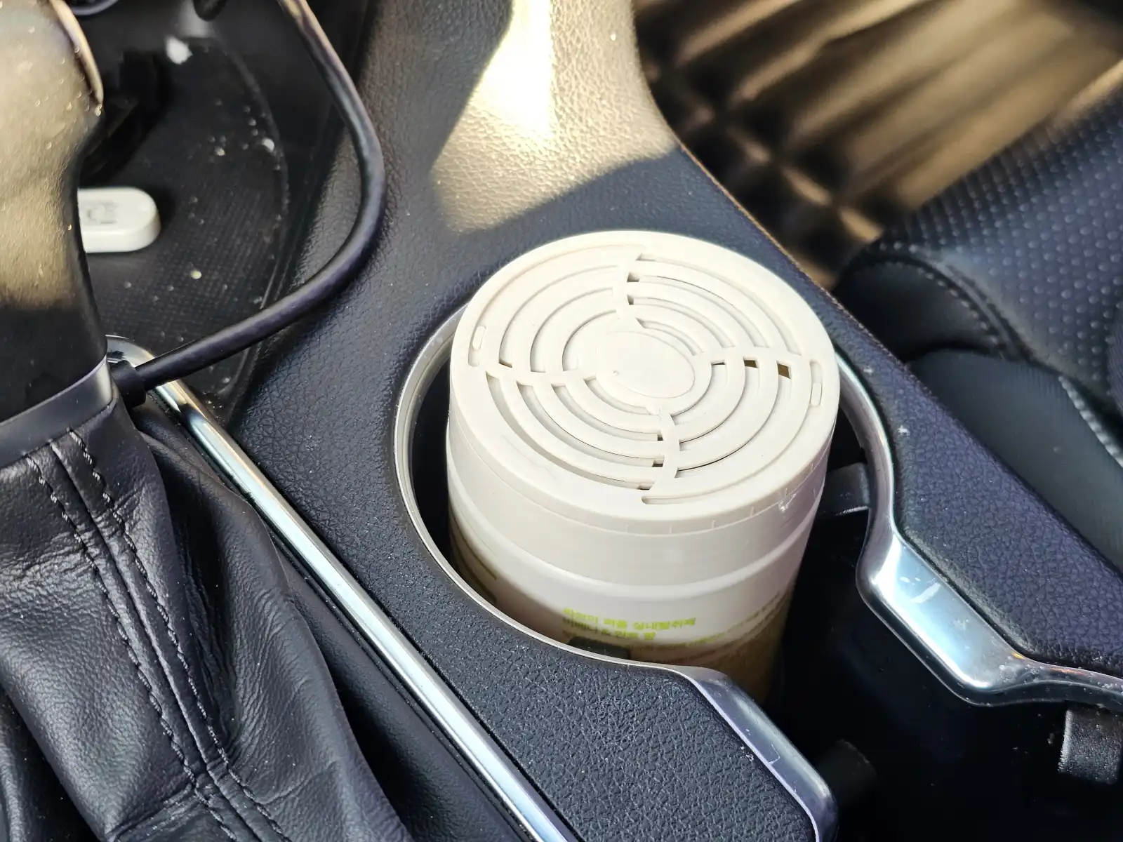 - 특징: 일반적인 컵홀더 사이즈에 정확히 호환됩니다. 액상형 디퓨저와 달리 주행 중 흔들림이나 전복 시에도 내용물이 흐르지 않는 고체 젤 타입이라는 점이 가장 큰 장점입니다.