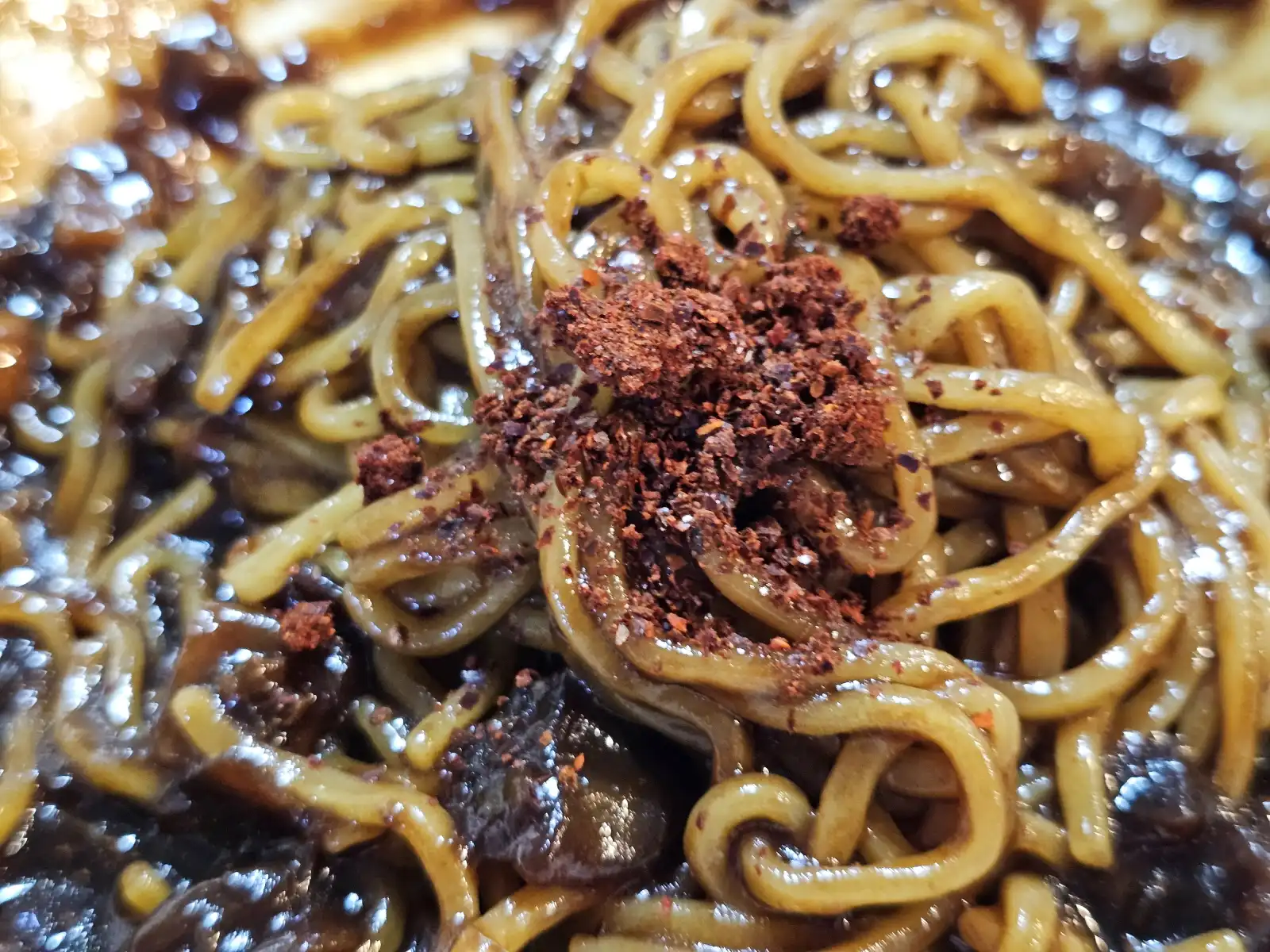 - 마무리로 고춧가루 뿌리기: 완성된 짜장면에 고춧가루를 솔솔 뿌려주세요. 고춧가루의 매콤한 맛이 짜장면의 느끼함을 싹 잡아줘서 마지막 한 젓가락까지 맛있게 먹을 수 있답니다.