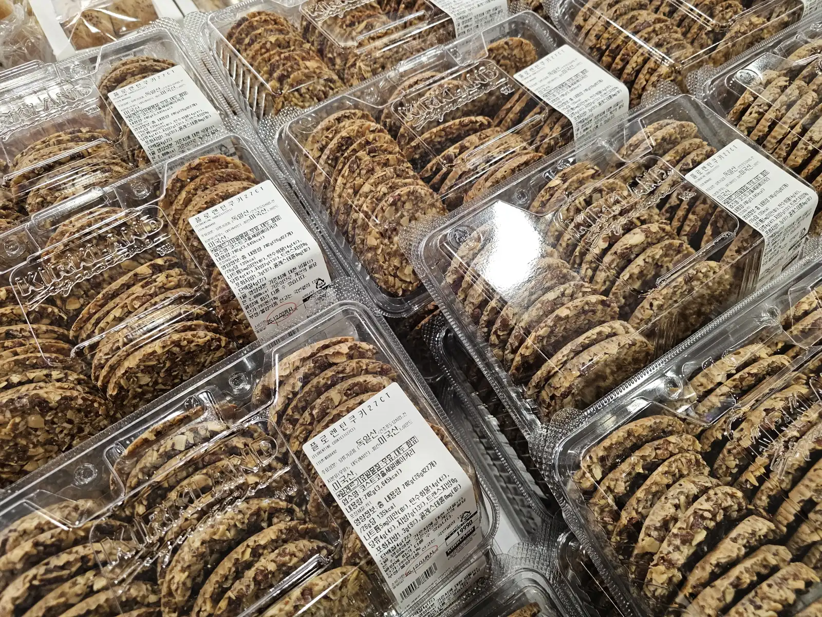- 주의사항: 아몬드와 피칸이 듬뿍 들어간 튀일 스타일 쿠키예요. 초콜릿 코팅이 없어져서 오히려 담백하고 고소합니다. 다만 습기에 약해서 금방 눅눅해지니, 지퍼백에 넣어 냉동 보관하셔야 끝까지 '오독오독'하게 드실 수 있습니다.
