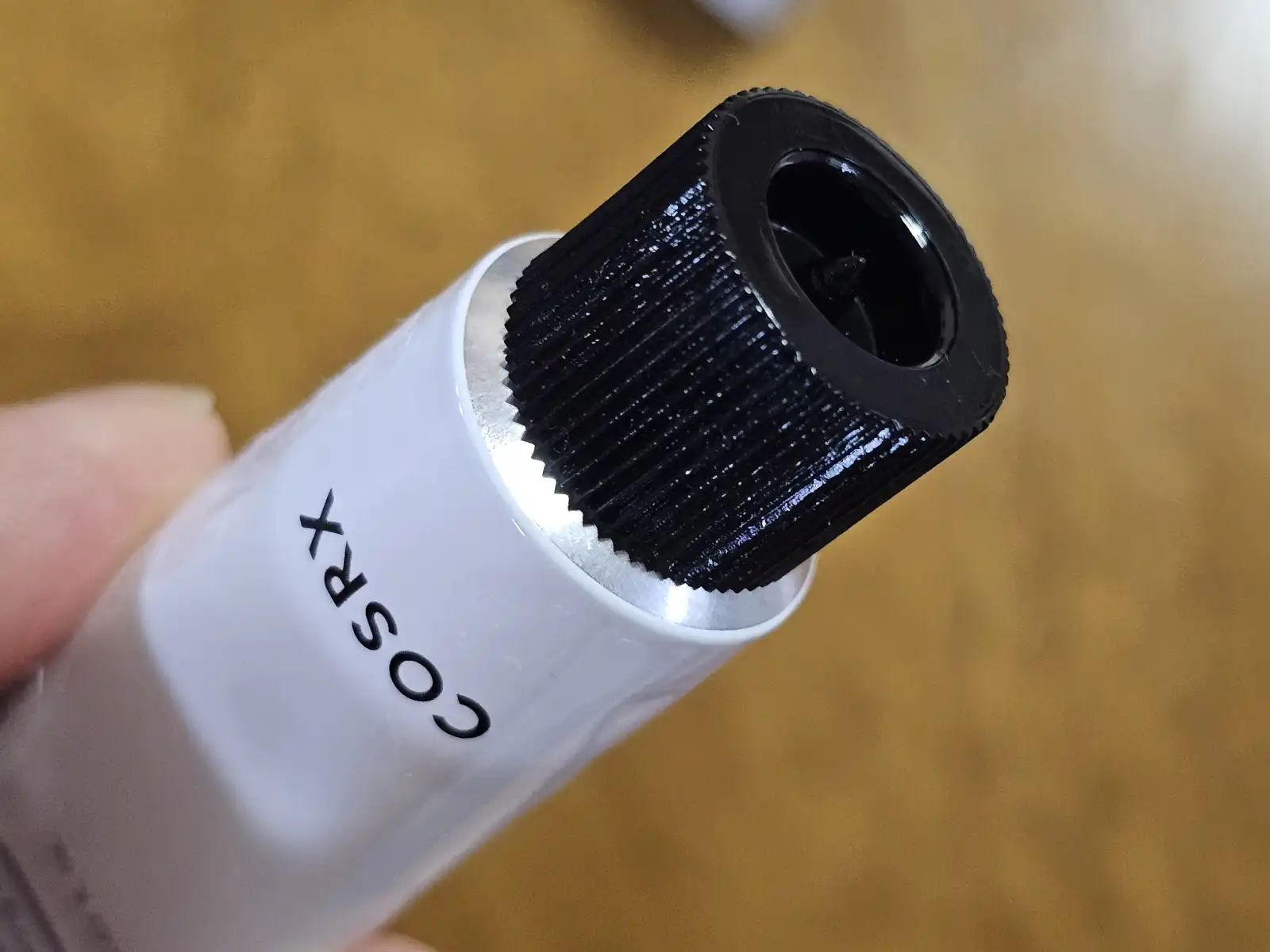 제품은 연고처럼 생긴 알루미늄 튜브에 들어있어요. 여기서 주부님들이 꼭 아셔야 할 두 가지 주의사항이 있습니다.