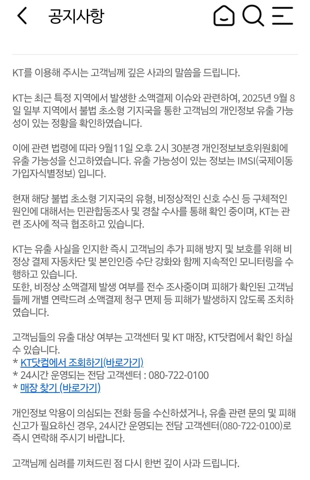 이번 사건은 개인의 부주의를 넘어선 통신사 보안 문제이므로, 피해를 입지 않았더라도 평소 소액결제 내역을 주기적으로 점검하고 관리하는 습관을 들이는 것이 중요합니다.