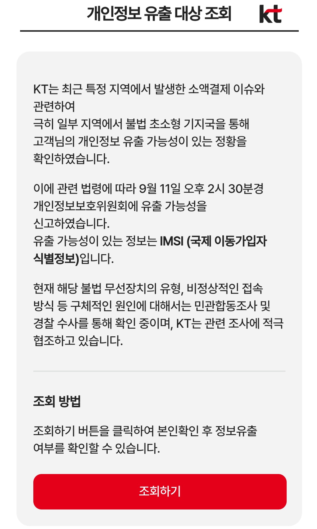 KT는 이용자들이 직접 피해 여부를 확인할 수 있는 방법을 제공하고 있습니다. 가장 빠르고 간편한 방법은 KT 공식 앱을 이용하는 것입니다.